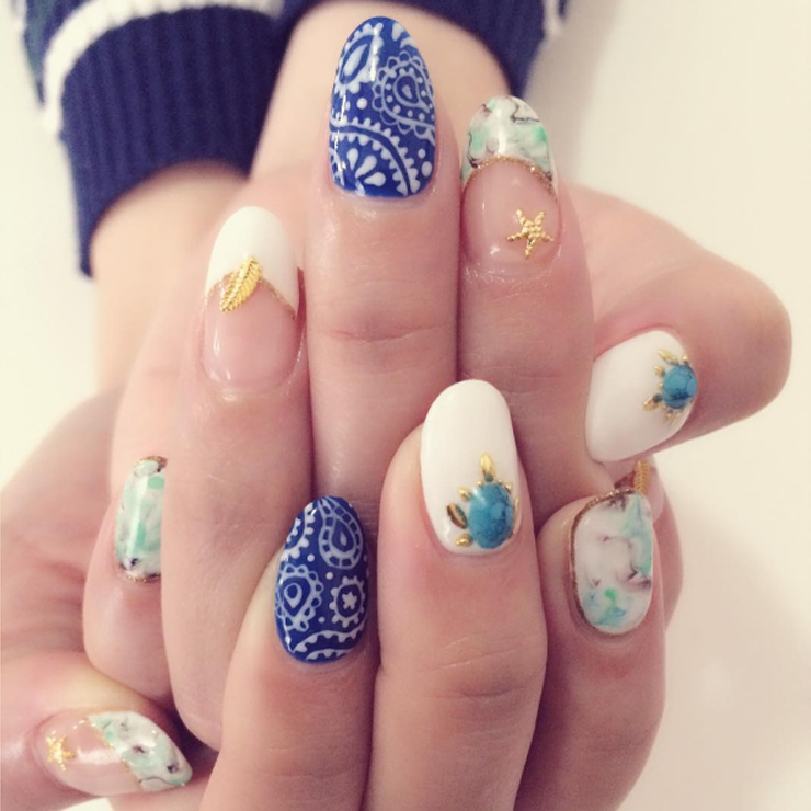 夏天到了!計劃即將要去海邊玩耍的女孩,除了基本的泳衣還有服裝之外,你的指彩也準備好了嗎?最近日本流行起了「變形蟲頭巾指彩」(バンダナネイル),鮮豔的配色加上充滿異國感的變形蟲圖騰,最後以些許裝飾物點綴,成了夏天最搶眼的配件!想打造夏季感十足的指彩嗎?趕快來看看吧!